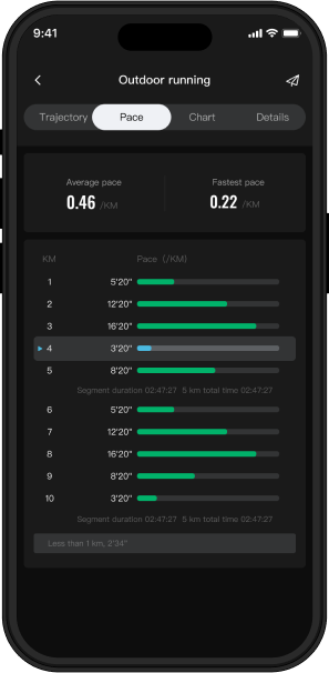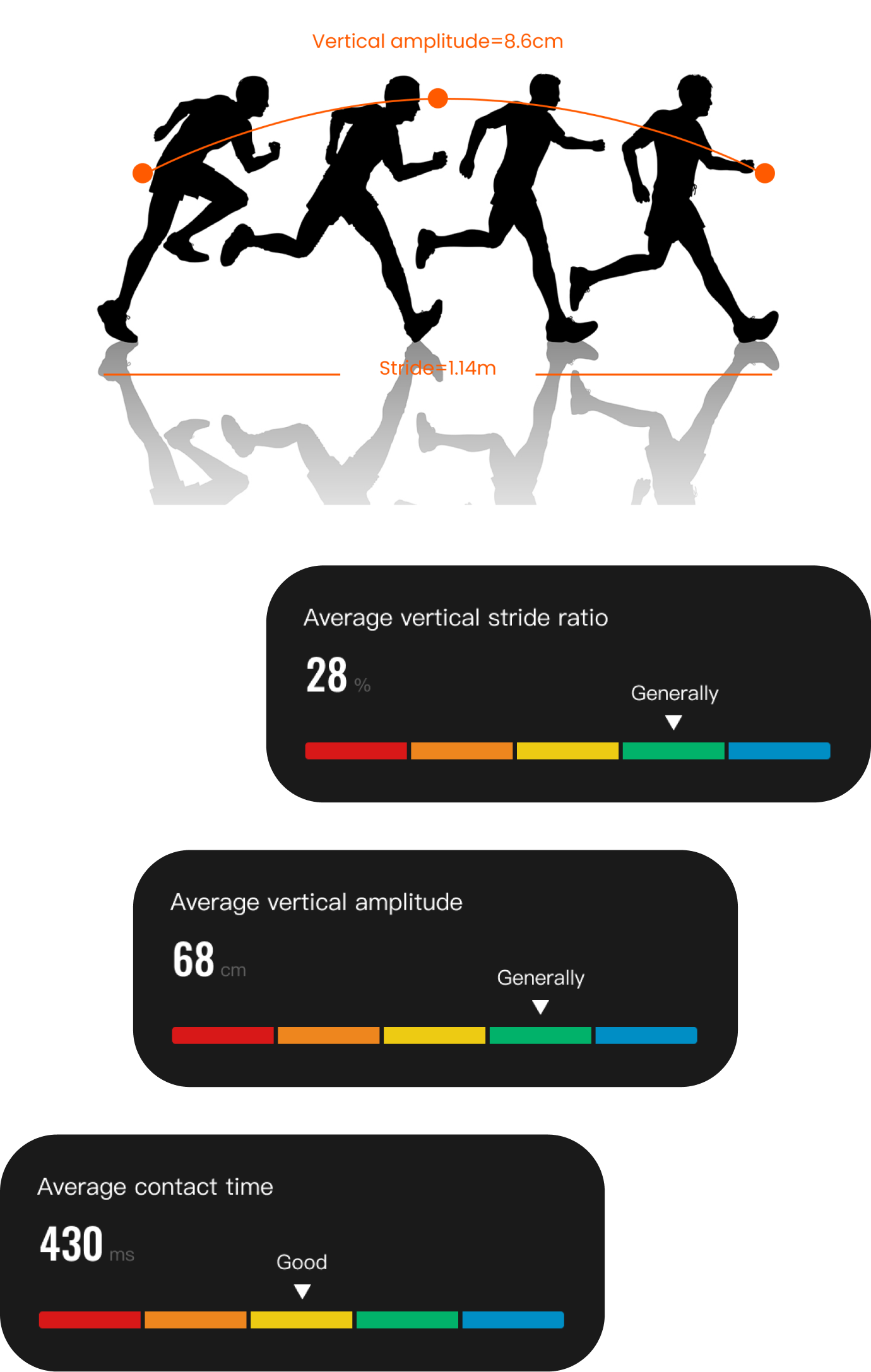 La dinámica de carrera es un indicador crucial que te ayuda a entender la distribución de la energía. Al controlar la oscilación vertical y la relación vertical, obtienes información sobre los detalles de tu técnica de carrera y entiendes qué hábitos pueden estar afectando tu rendimiento. En función de estos datos, puedes ajustar tu postura al correr, por ejemplo, reduciendo los saltos innecesarios u optimizando los ángulos de impacto del pie, para lograr un estado de carrera más eficiente.