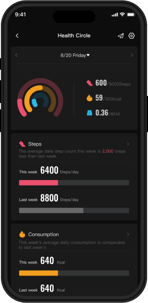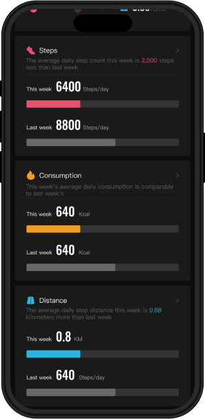 Los datos diarios de actividad y salud ya no son números abstractos, sino símbolos de tu vitalidad. Tu reloj registra cada paso, cada momento de actividad y cada entrenamiento intenso. La aplicación Mibro Fit presenta esta información en gráficos detallados, lo que permite rastrear cada esfuerzo y sirve como una base sólida para tu futuro, inspirándote a alcanzar nuevas metas continuamente. Hasta que finalmente puedas decir con orgullo: "No solo caminé, sino que volé".