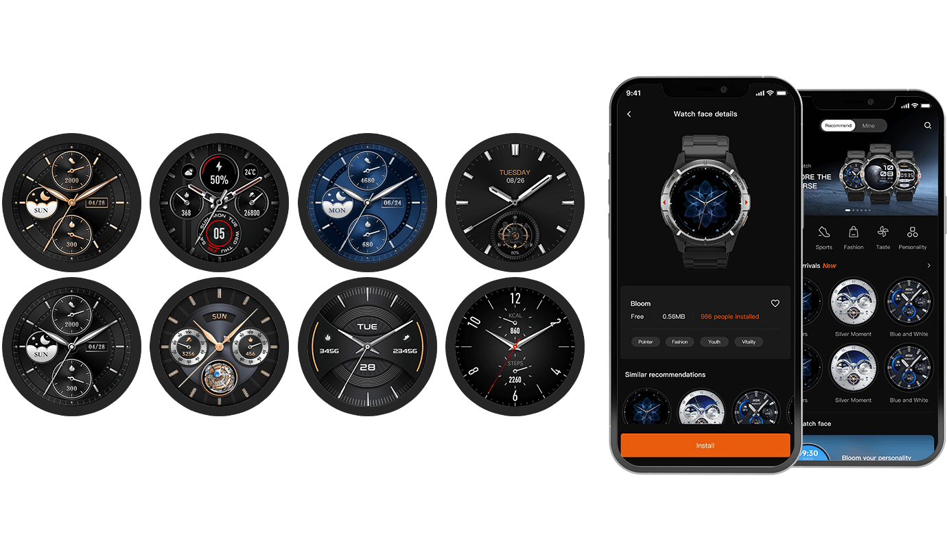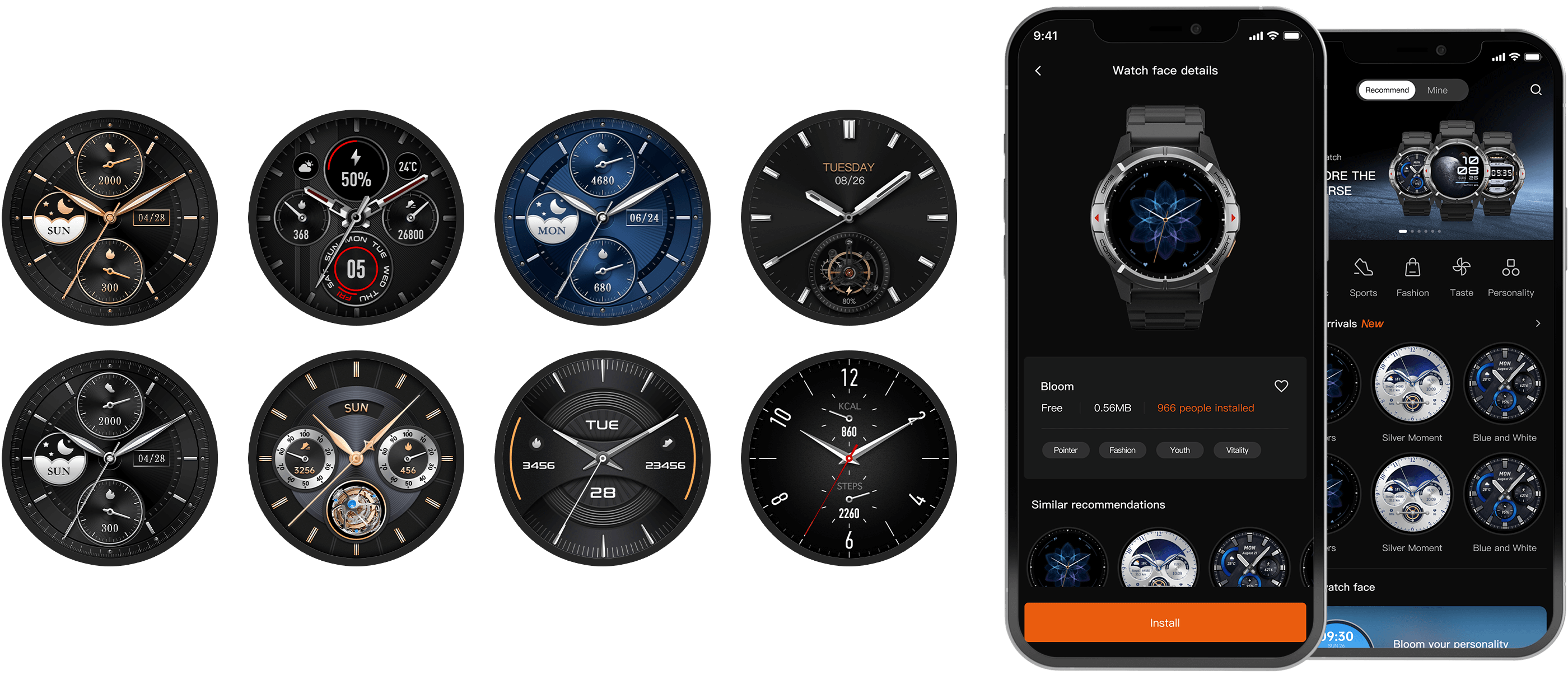 Entra en la galería del tiempo y personaliza tu estética del tiempo. La galería de carátulas de relojes Mibro Fit ofrece una amplia selección de diseños para elegir. Desde líneas minimalistas hasta nostalgia vintage, desde pantallas digitales de alta tecnología hasta ilustraciones elaboradas con mucho arte, cada carátula de reloj es una obra maestra del diseño. En ocasiones especiales, carga tus propias fotos, personaliza fondos, fuentes y colores, permitiendo que la creatividad y la individualidad florezcan, convirtiendo el paso del tiempo en una obra de arte en tu muñeca.