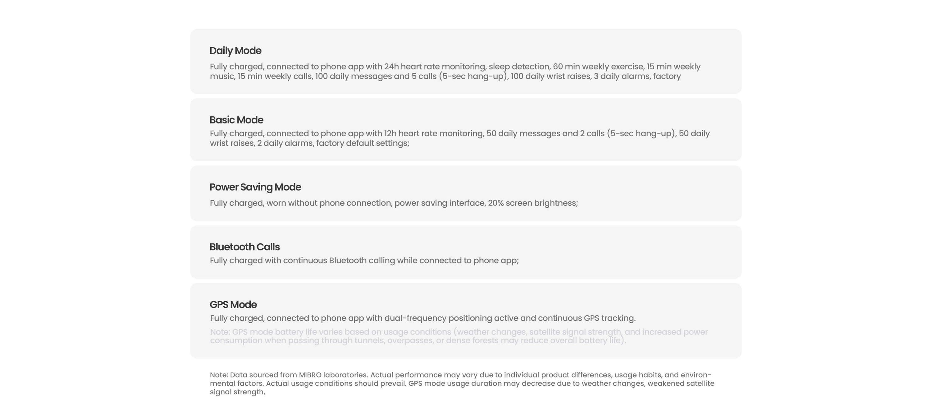 Advanced 5-system positioning (GPS/ Beidou/ GLONASS/ Galileo/ QZSS) ensures rapid satellite acquisition and complete workout trajectory tracking.