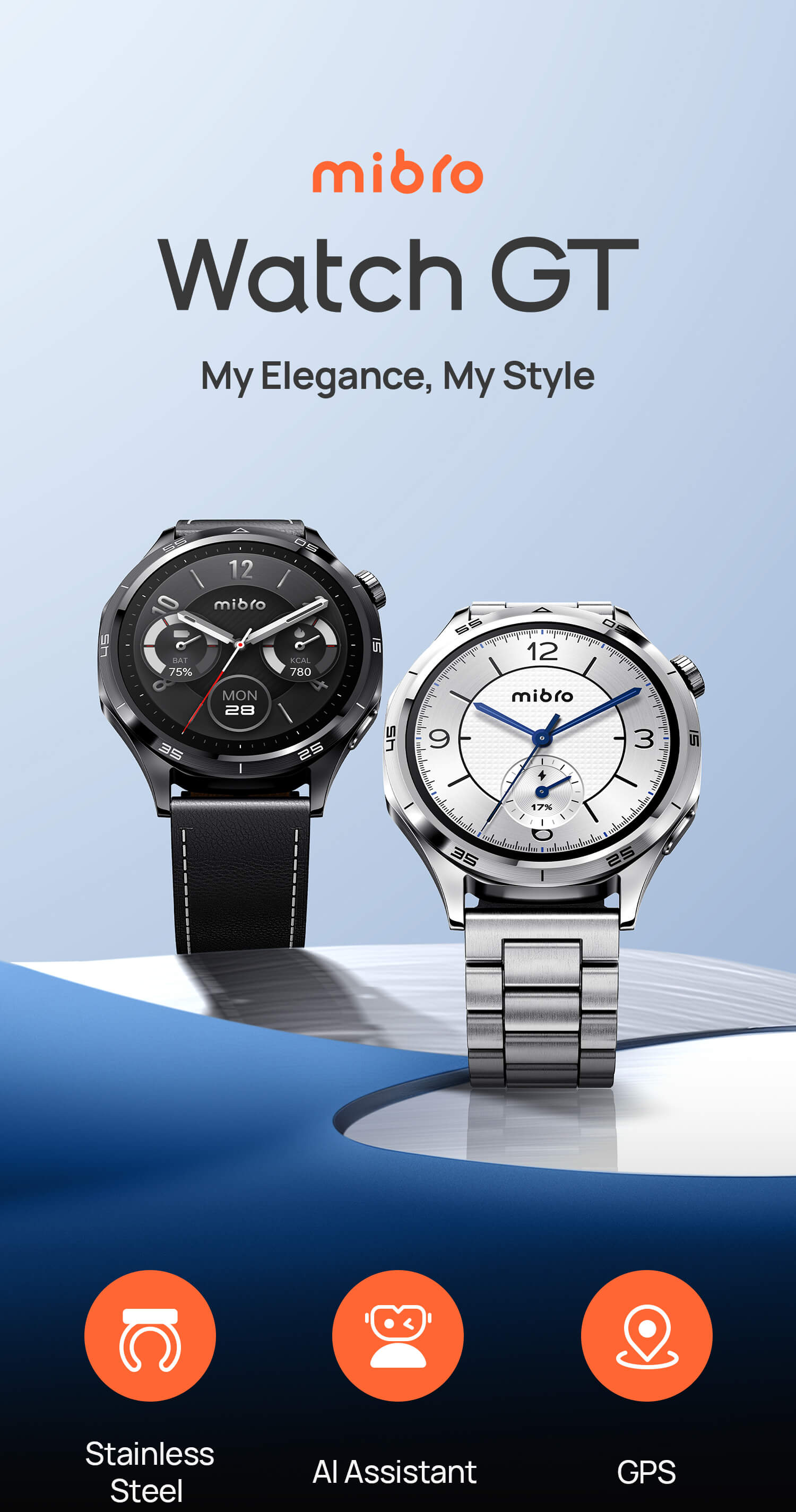 Crafted with elegant 316L stainless steel, the Mibro Watch GT blends timeless style with everyday durability for a refined look on any occasion.