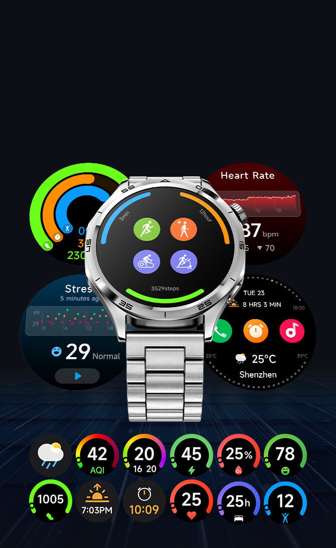 Stay informed with 24/7 heart rate, blood oxygen, stress, and sleep monitoring—powered by advanced sensors for reliable health insights.