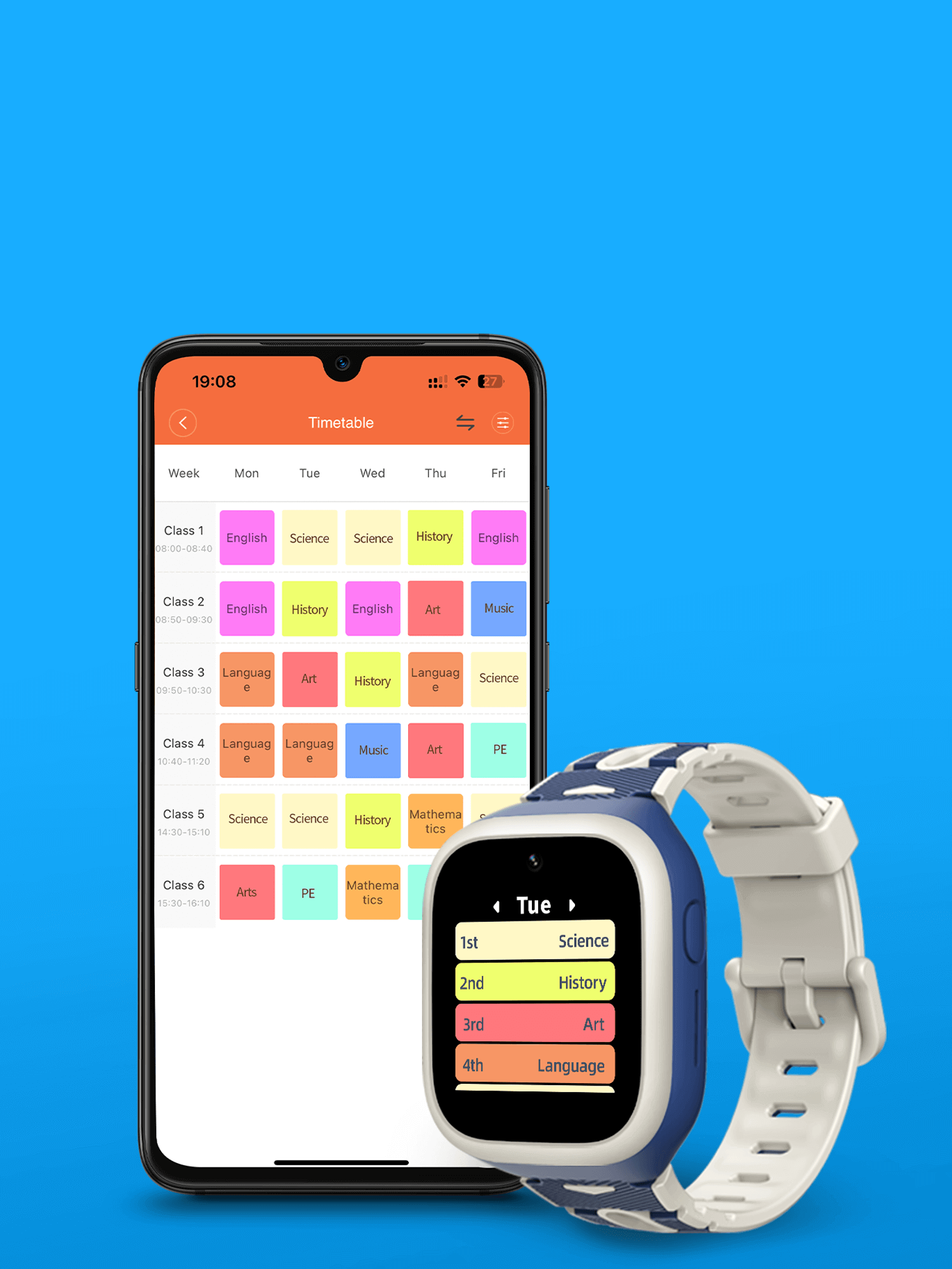 Establezca horarios semanales a través de la aplicación para mantener a los niños organizados con recordatorios diarios de clases.
