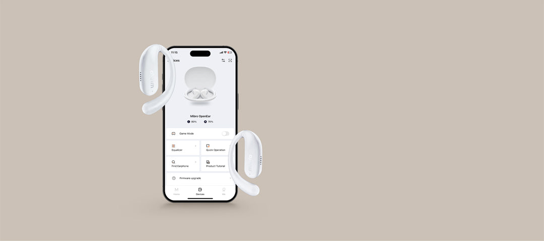 Simultaneous BT+BLE connections (2 devices) with instant switching. Dedicated app enables EQ customization, battery monitoring (6hr/30hr total), and touch controls.