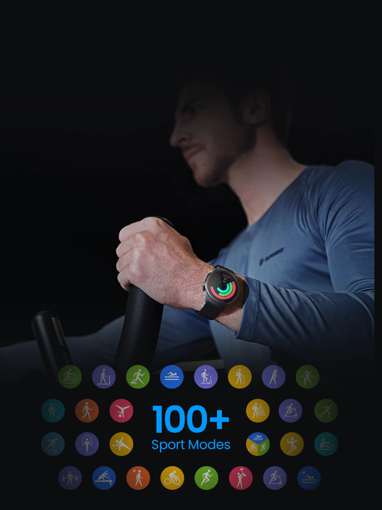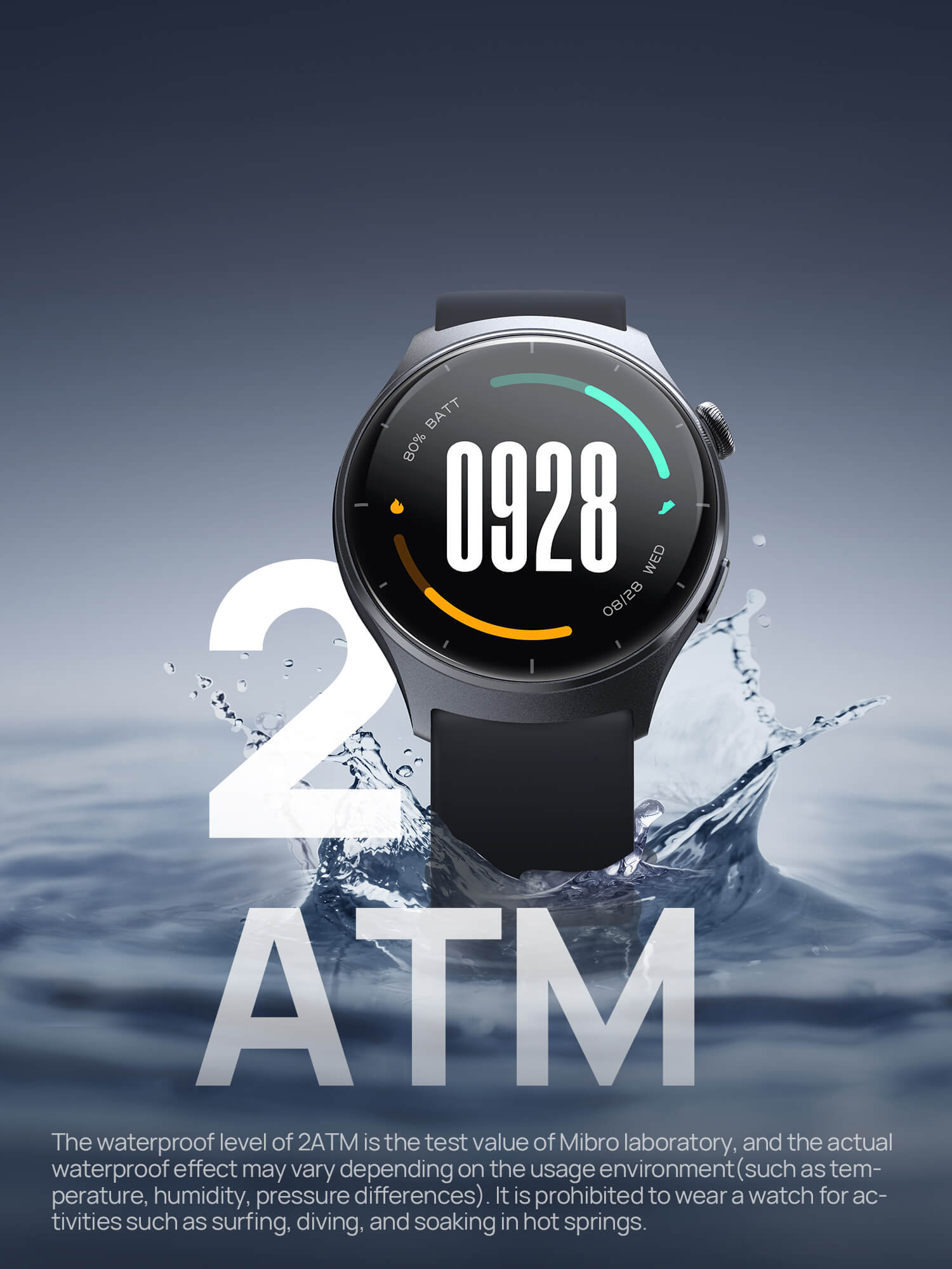 Más de 100 modos deportivos impulsados por algoritmos de movimiento profesionales. Resistente al agua hasta 2 ATM y compatible con el modo de natación profesional.