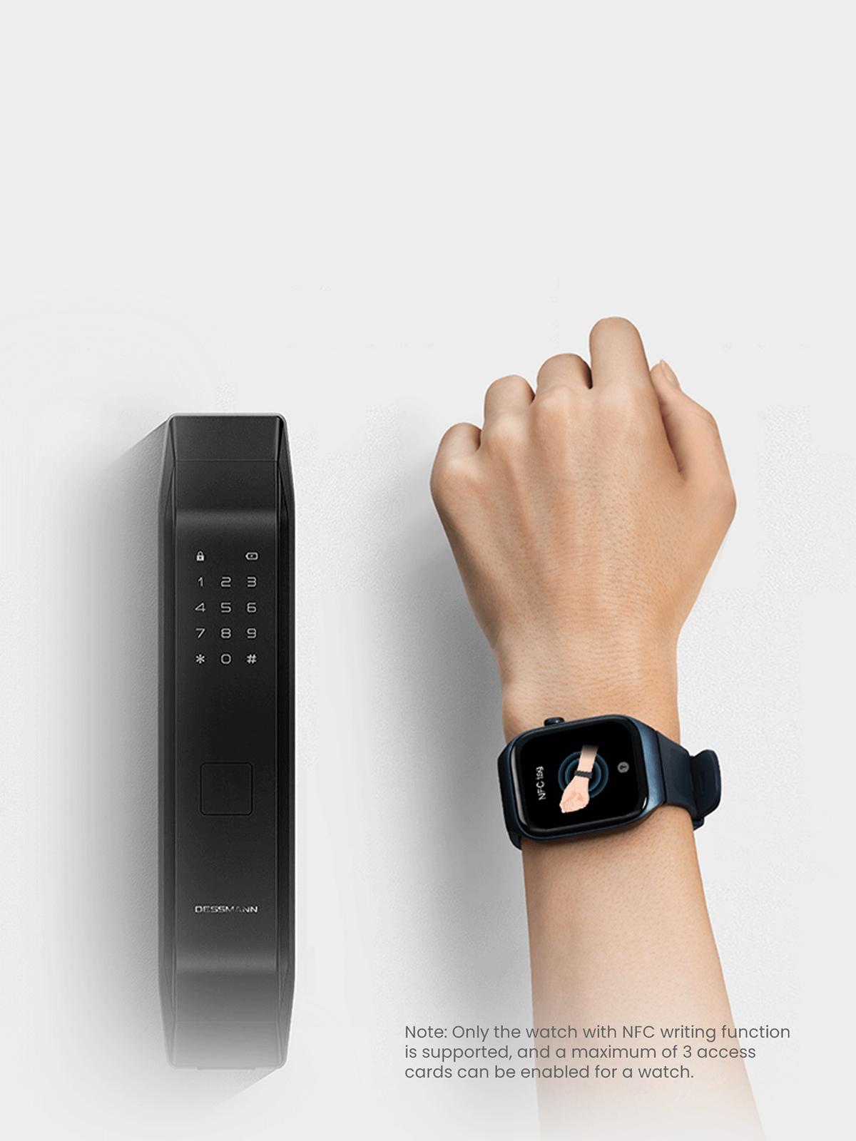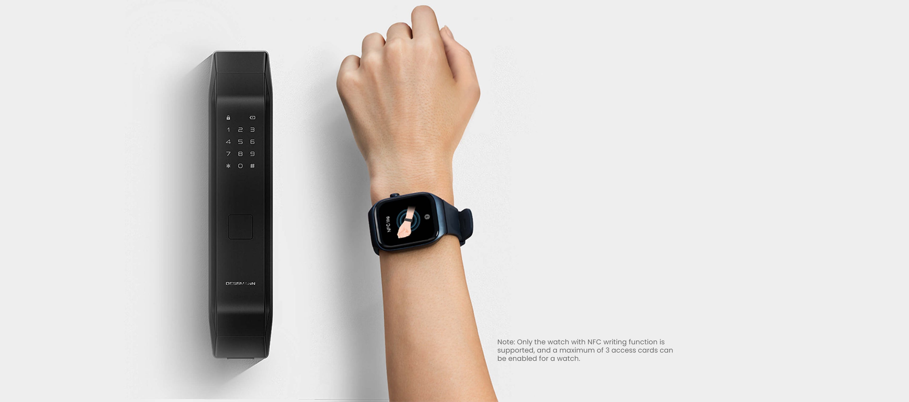 Utilice el reloj para desbloquear puertas con una etiqueta digital,